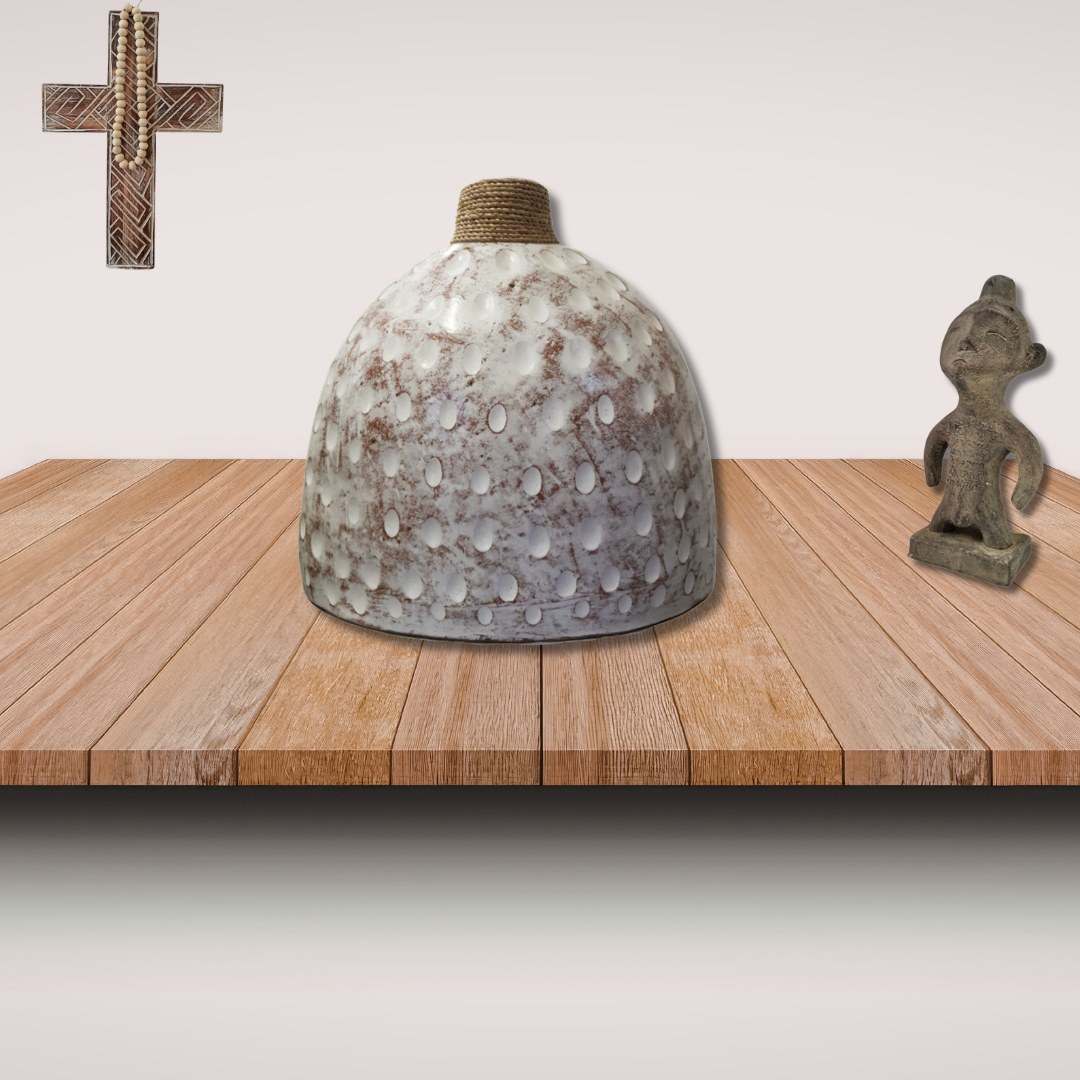 Decorative Tabletop Vase – Textured Ceramic with Jute
